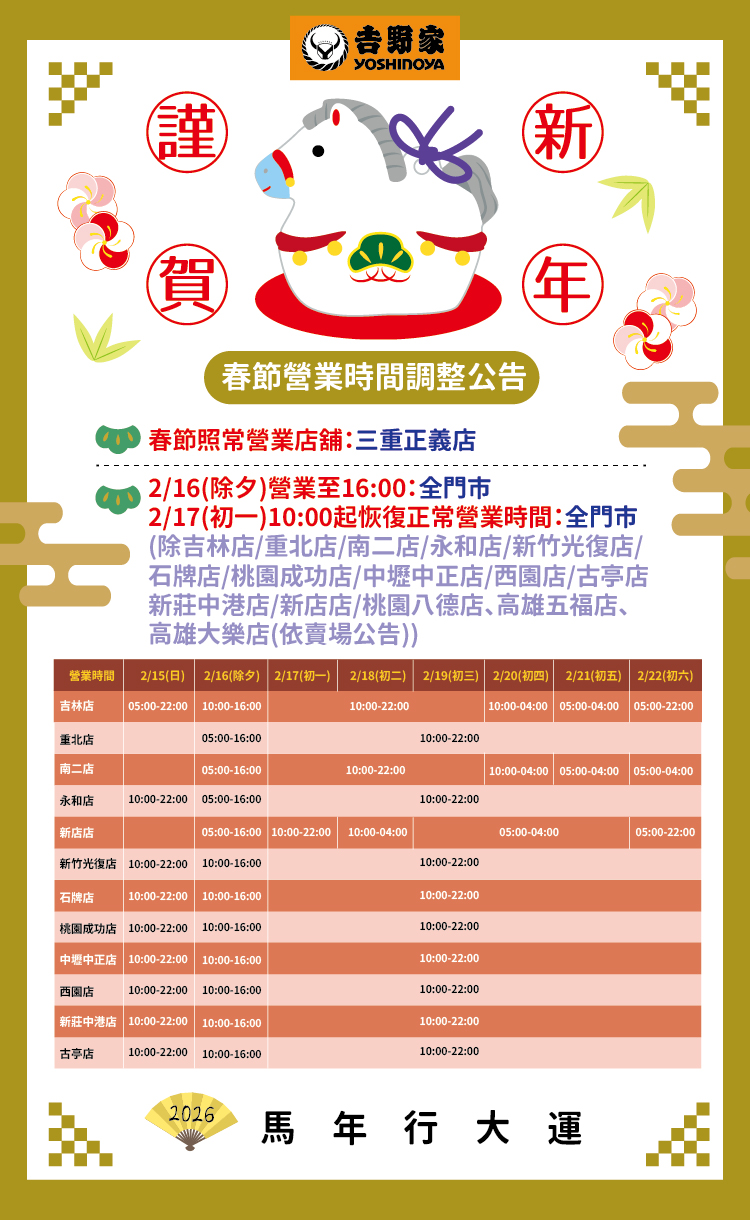 【吉野家春節公告!】