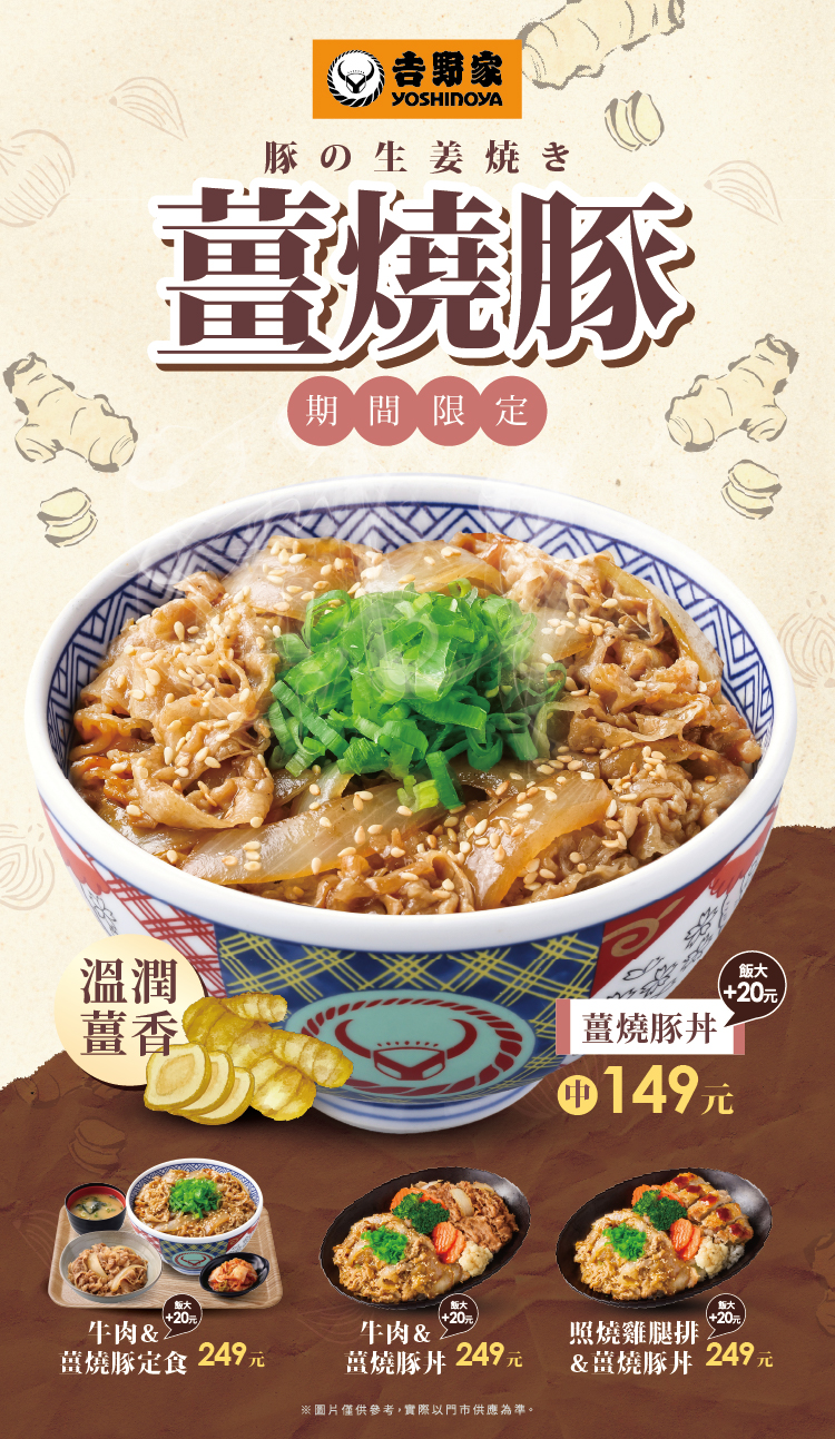 *薑燒豚丼中 嘗鮮價149元(飯大加20元)